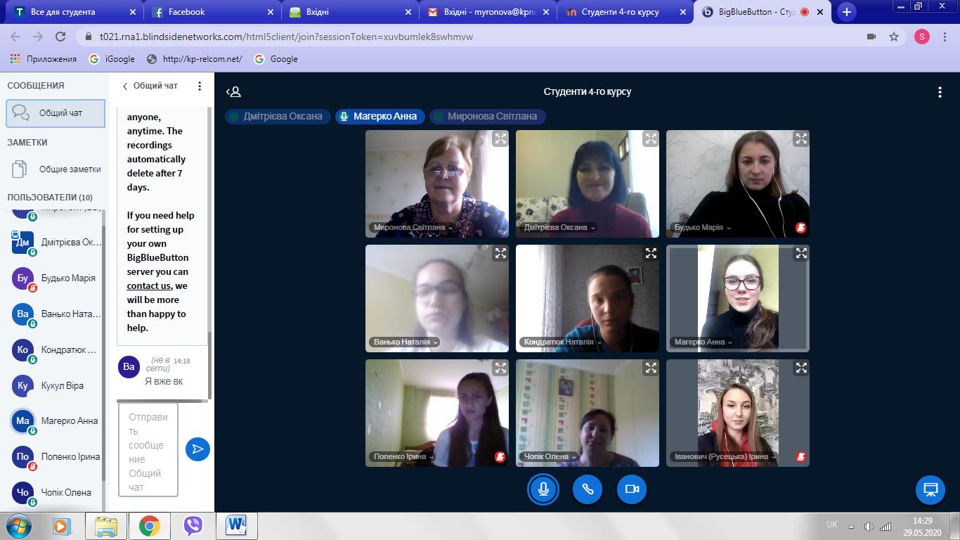 29 травня 2020 року на кафедрі корекційної педагогіки та інклюзивної освіти відбулась конференція із захисту практики груп KorO1-B16 (Виробнича педагогічна практика), KorO1-M19 (Виробнича практика на посаді практичного (спеціального) психолога закладів дошкільної та загальної середньої освіти і соціально-реабілітаційних закладів), KorL1-M19 (Виробнича практика на посаді практичного (спеціального) психолога закладів дошкільної та загальної середньої освіти і соціально-реабілітаційних закладів).
