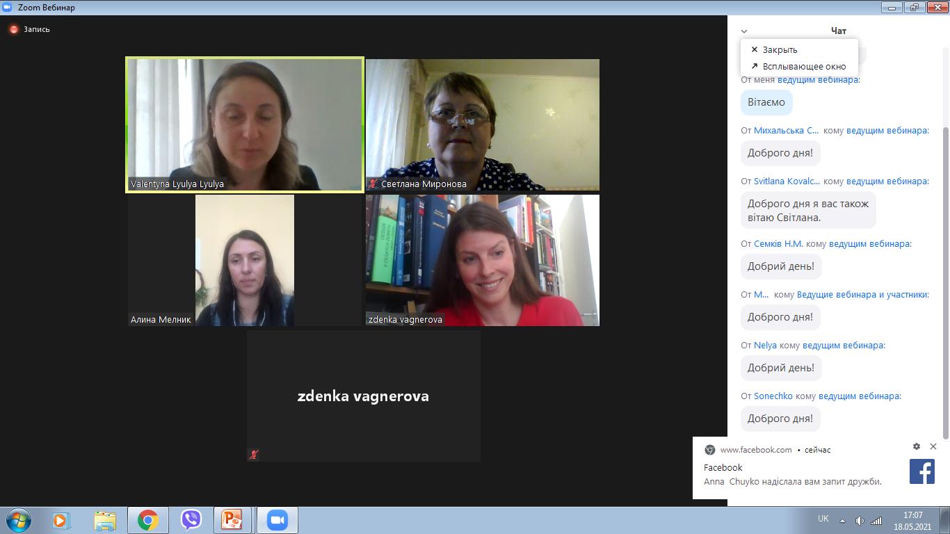 18 травня 2021 року на платформі ZOOM доктор педагогічних наук, професор, завідувачка кафедри корекційної педагогіки та інклюзивної освіти Кам’янець-Подільського національного університету імені Івана Огієнка Миронова Світлана Петрівна провела вебінар «Взаємодія батьків дітей з особливими освітніми потребами з фахівцями: стереотипи, міфи, реальність». Захід відбувся за підтримки компанії АМО (Чехія).