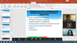 7 грудня 2021 року доктор педагогічних наук, професор, професор кафедри спеціальної та інклюзивної освіти, проректор з наукової роботи Миронова Світлана Петрівна в рамках проекту “Інклюзія в Україні”, який реалізується спільно з Чеськими партнерами була спікером семінару “Реалізація корекційної складової інклюзивного навчання”.