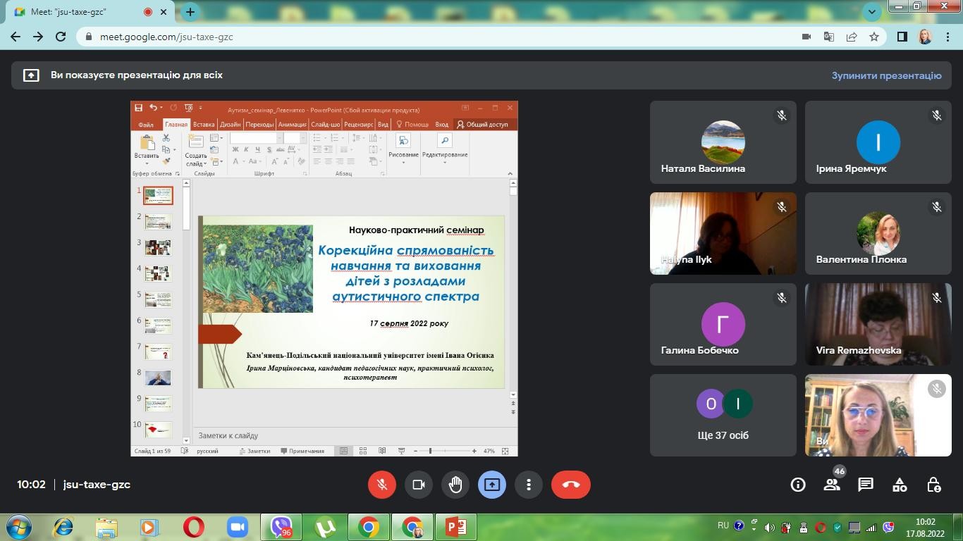 18 серпня 2022 року кафедрою спеціальної та інклюзивної освіти було проведено науково-практичний семінар «Невербальна комунікація у професійній діяльності корекційного педагога: теорія, практика, досвід»