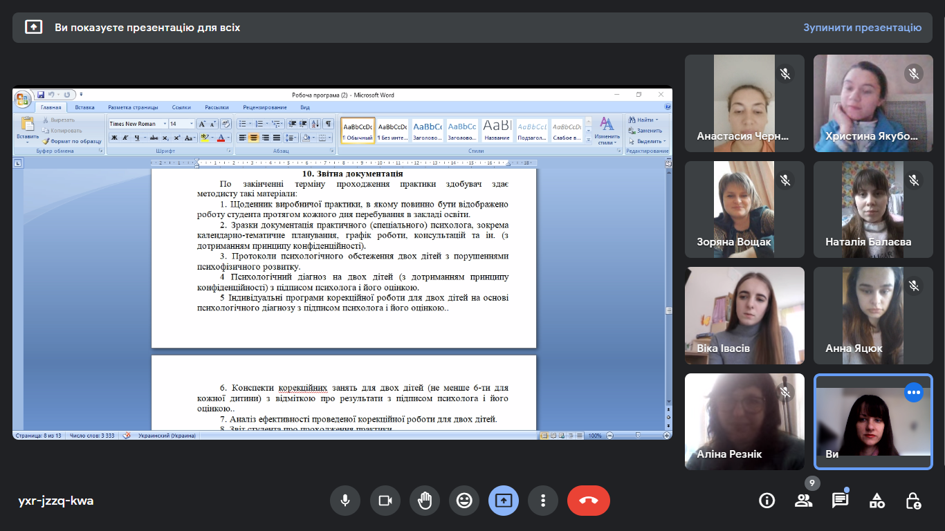 24 лютого 2023 року відбулась настановна конференція з практики на посаді практичного (спеціального) психолога в закладах дошкільної та загальної середньої освіти для здобувачів вищої освіти першого (бакалаврського) рівня вищої освіти спеціальності 016 Спеціальна освіта. У конференції взяли участь здобувачі вищої освіти груп KorO1-B19z, KorL1-B19z та керівник практики, кандидат педагогічних наук, доцент, Докучина Т.О., яка ознайомила здобувачів вищої освіти зі змістом та завданнями практики, провела інструктаж з техніки безпеки. Під час зустрічі було обговорено вимоги до звітної документації, особливості проходження практики в умовах воєнного стану.