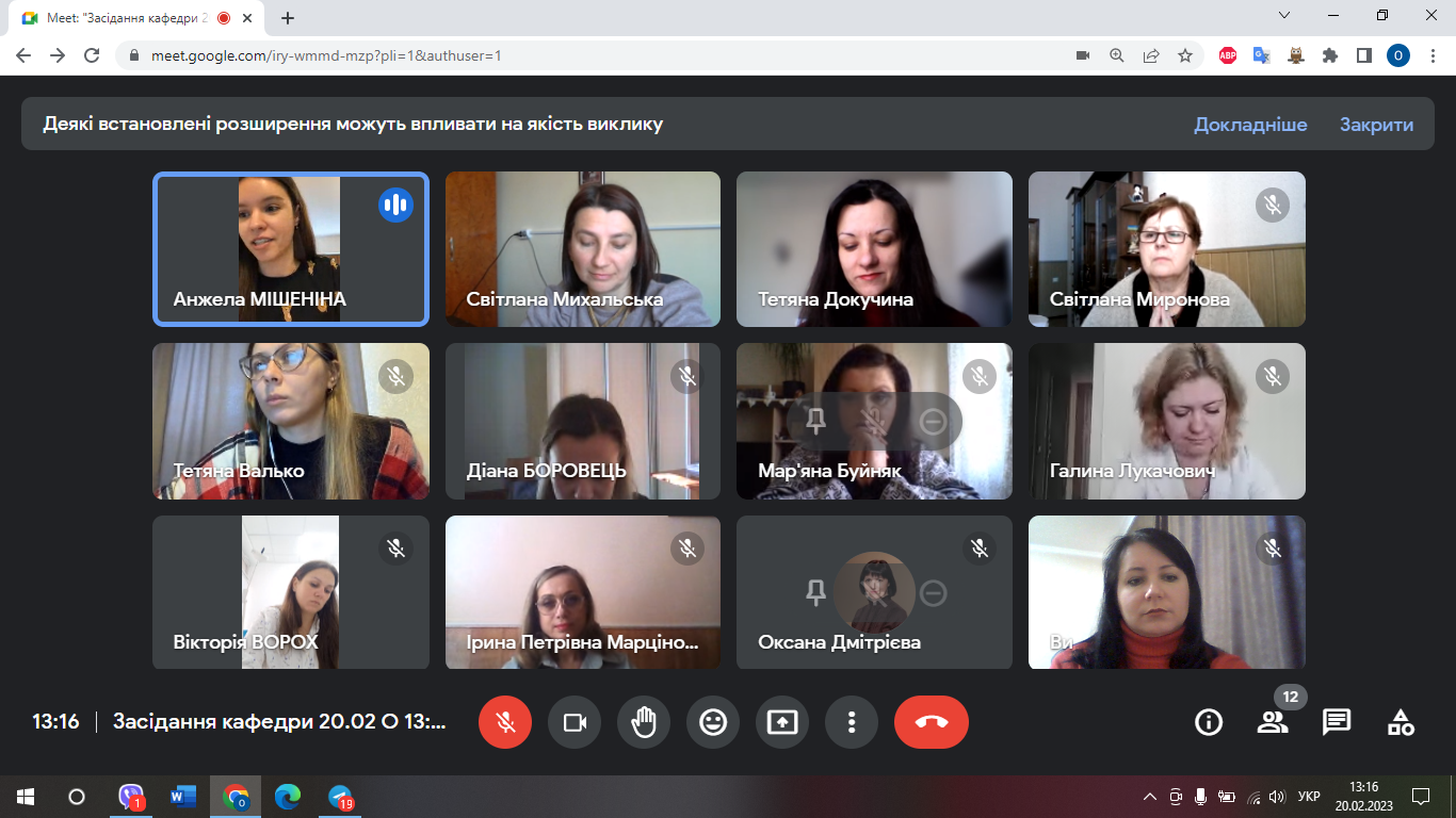 14 і 16 лютого асистент кафедри спеціальної та інклюзивної освіти Тетяна ВАЛЬКО взяла участь у чергових зустрічах учасників проєкту «Школа професійного розвитку викладачів К-ПНУ», спікером яких була Наталія КОВАЛЕНКО, учений секретар, доцент кафедри української мови, доктор філологічних наук.