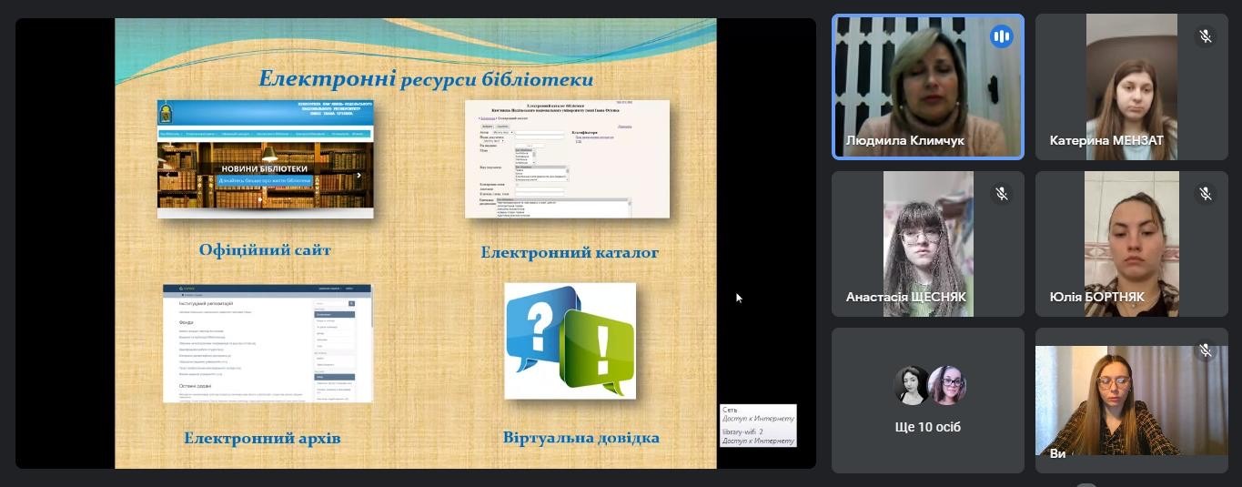 17 лютого відбулась зустріч здобувачів 1-4 року навчання першого (бакалаврського) рівня вищої освіти спеціальності 016 Спеціальна освіта з директором бібліотеки університету Людмилою КЛИМЧУК.