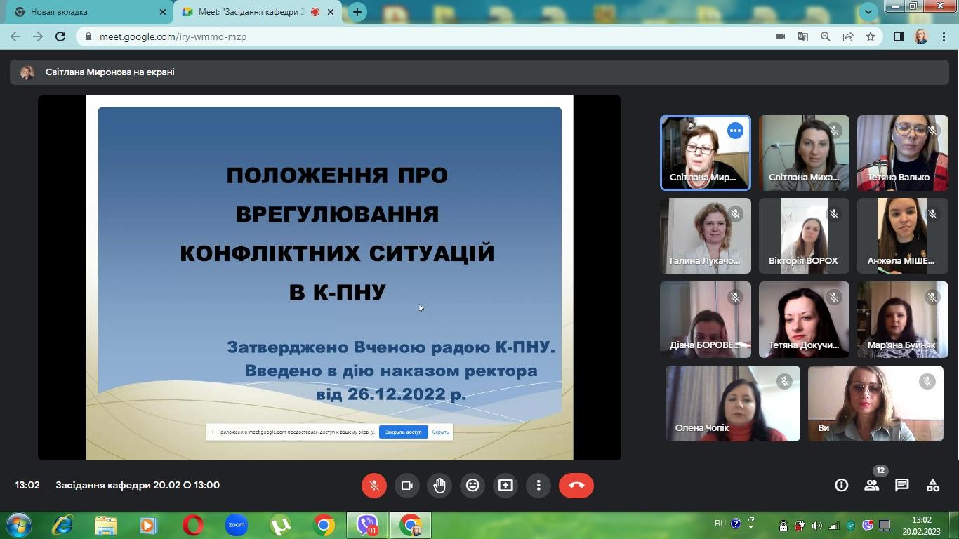 Гарант освітньо-наукової програми спеціальності 016 Спеціальна освіта третього рівня (доктор філософії) доктор педагогічних наук, професор Світлана МИРОНОВА обговорила з аспірантами Положення про врегулювання конфліктних ситуацій в Кам’янець-Подільському національному університеті імені Івана Огієнка