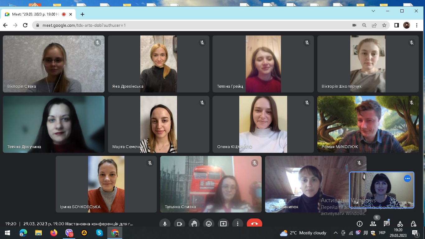 29.03.2023 р. відбулася настановна конференція з виробничої педагогічної практики на посаді вчителя-дефектолога (олігофренопедагога) в закладах дошкільної та загальної середньої освіти з інклюзивним навчанням, навчально-реабілітаційних закладах із здобувачами вищої освіти денної форми навчання групи SoO1-M22, яку провели керівники практики канд. пед. наук, доцент Дмітрієва О.І., канд. пед. наук, доцент Докучина Т.О. та методист практики Кукул В.О.