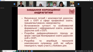 Тетяна Валько розповіла про практичні аспекти здійснення корекційної роботи, озвучила вимоги до облаштування кабінету фахівця, продемонструвала базовий набір матеріалів для роботи та варіанти їх застосування тощо.
