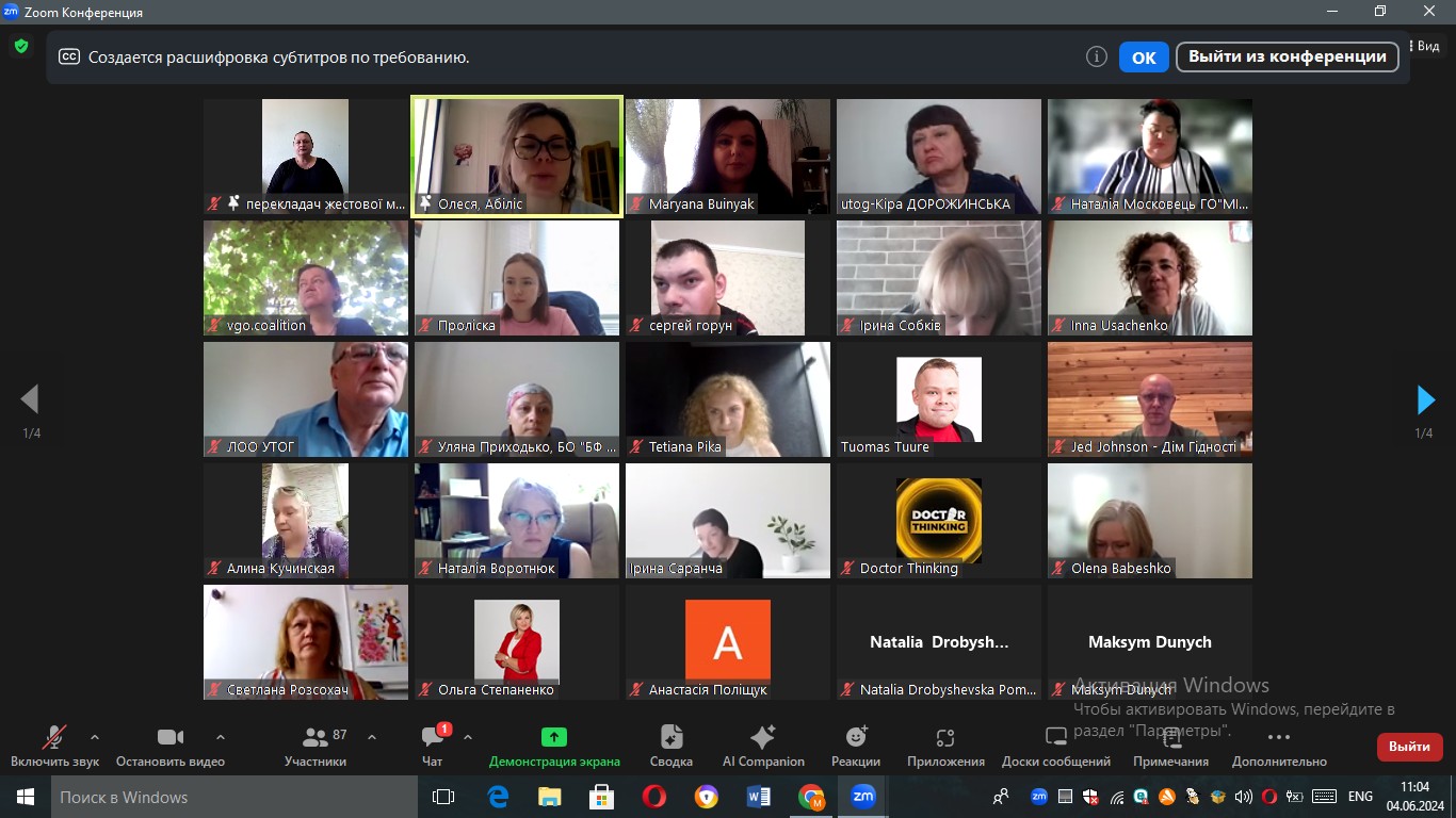 4 червня 2024 року кандидат психологічних наук, доцент Буйняк М.Г. взяла участь у роботі круглого столу на тему «Підвищення якості надання соціальних послуг особам з інвалідністю недержавними організаціями», проведеному спільно з Фондом Abilis Foundation (Фінлянлія, м. Гельсінкі).