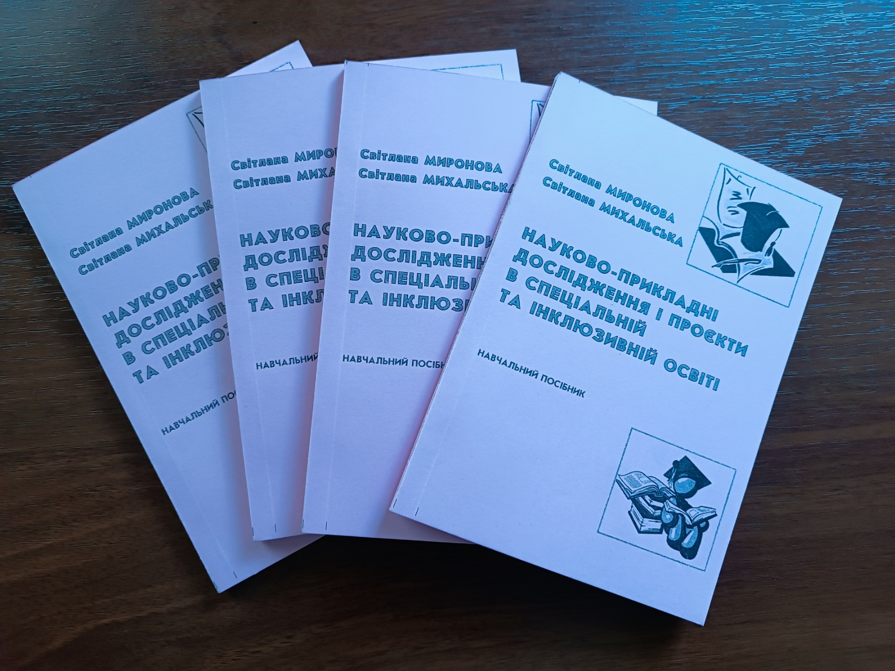 Вийшов друком навчальний посібник Світлани МИРОНОВОЇ та Світлани МИХАЛЬСЬКОЇ “Науково-прикладні дослідження і проєкти в спеціальній та інклюзивній освіті”. Він адресований науковцям, які здійснюють наукові пошуки, спеціальним педагогам, які реалізують дослідницько-творчу діяльність. Ознайомитися з навчальним посібником можна в бібліотеці університету та репозитарії. Покликання на електронну версію http://elar.kpnu.edu.ua:8081/xmlui/handle/123456789/8084