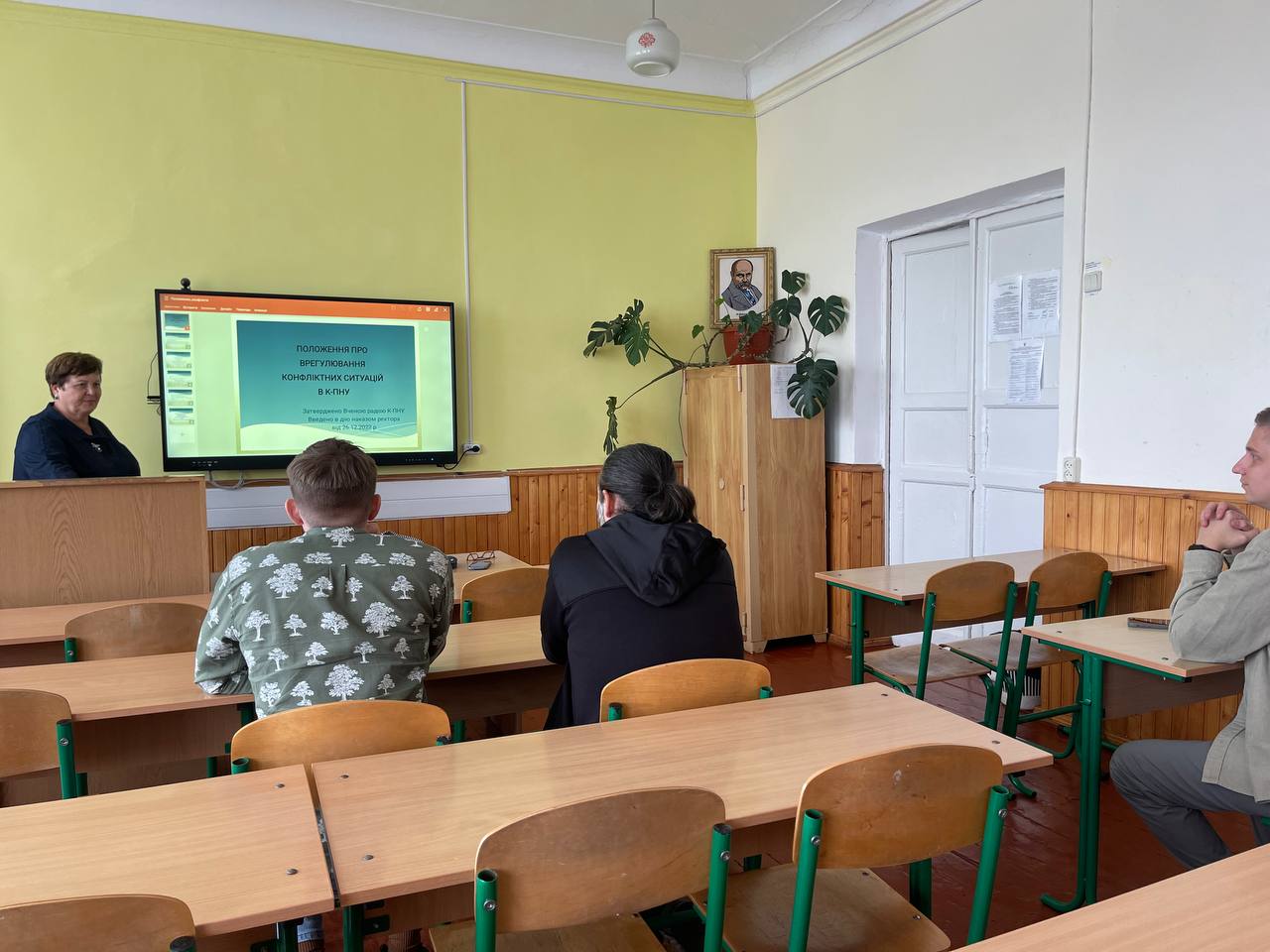 Під час зустрічі повідомили про діяльність соціально-психологічної служби, запити з якими можна звертатись до психологічної служби, обговорювалися проблеми переживання різних емоційних станів здобувачами, було проведено вправи на визначення власного емоційного стану.