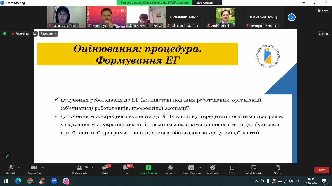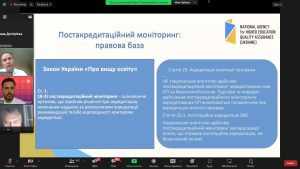 Протягом 1,5 год. присутні мали можливість ознайомитися з новаціями акредитації, про які розповів Голова Національного агентства Андрій Бутенко, із змінами у процедурі здійснення акредитації освітніх програм за Положенням 2024 року (заступник Голови Національного агентства, Олена Єременко), із процедурою здійснення постакредитаційного моніторингу (заступник Голови Національного агентства Іван Назаров). Учасники заходу мали можливість заздалегідь та під час зустрічі задати питання та отримати на них вичерпні відповіді.