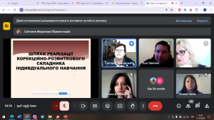 20 жовтня в рамках моніторингу ОП зустріч гаранта ОПП “Корекційна психопедагогіка та інклюзивне навчання” канд. психол. наук, доцента Буйняк М.Г. з педагогічними працівниками закладів освіти зі спеціальним та інклюзивним навчанням з метою обговорення ОПП “Корекційна психопедагогіка та інклюзивне навчання”.