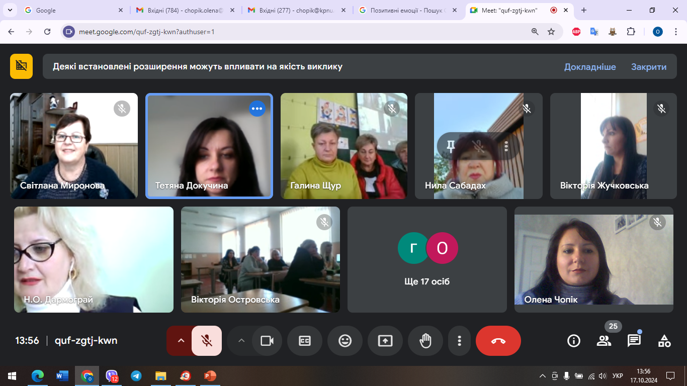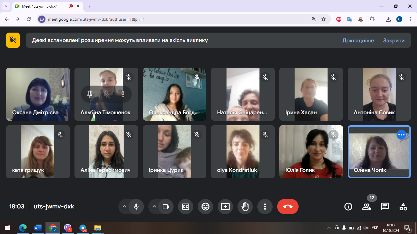 20 жовтня в рамках моніторингу ОП зустріч гаранта ОПП “Корекційна психопедагогіка та інклюзивне навчання” канд. психол. наук, доцента Буйняк М.Г. з педагогічними працівниками закладів освіти зі спеціальним та інклюзивним навчанням з метою обговорення ОПП “Корекційна психопедагогіка та інклюзивне навчання”.