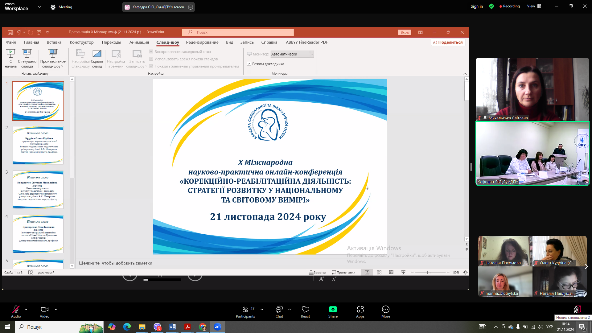 21 листопада 2024 року науково-педагогічні працівники кафедри спеціальної та інклюзивної освіти взяли участь в Х Міжнародній науково-практичній конференції «Корекційно-реабілітаційна діяльність: стратегії розвитку у національному та світовому вимірі» присвяченій 100-ччю Сумського державного педагогічного університету імені А. С. Макаренка.