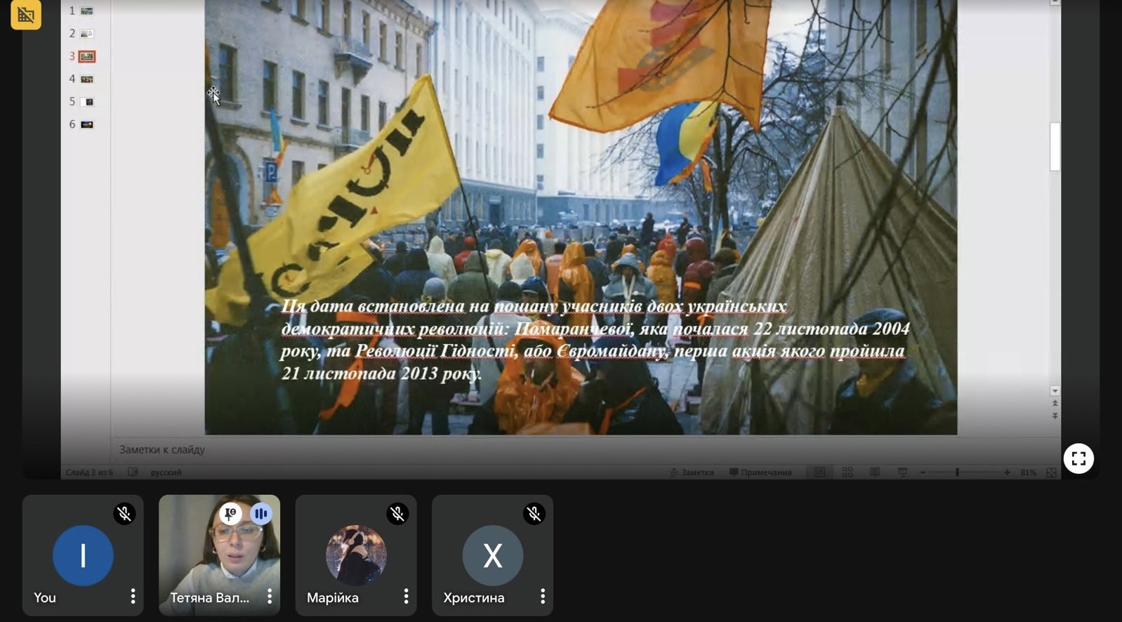 21 листопада асистент кафедри спеціальної та інклюзивної освіти, Валько Тетяна Ігорівна, провела виховний захід для здобувачів другого року навчання спеціальності 016 Спеціальна освіта, присвячений Дню Гідності та Свободи.
