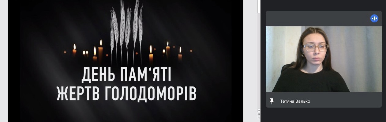 22 листопада для студентів третього курсу спеціальності 016 Спеціальна освіта було проведено виховну годину, присвячену Дню пам’яті жертв Голодоморів, метою якої стало вшанування пам’яті мільйонів невинно загиблих під час трагічних подій української історії.