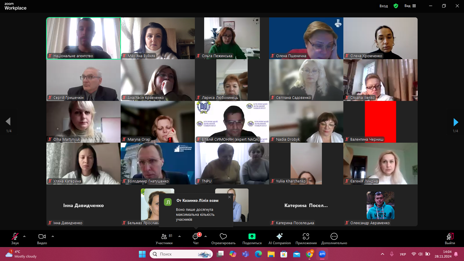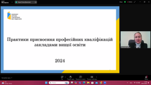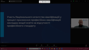 28 листопада 2024 р. кандидат психологічних наук, доцент, старший викладач кафедри спеціальної та інклюзивної освіти Буйняк М.Г. взяла участь у вебінарі «Актуальні питання присвоєння професійних кваліфікацій закладами вищої освіти», який був організований Національним агентством із забезпечення якості вищої освіти спільно з Національним агентством кваліфікацій (НАК).
