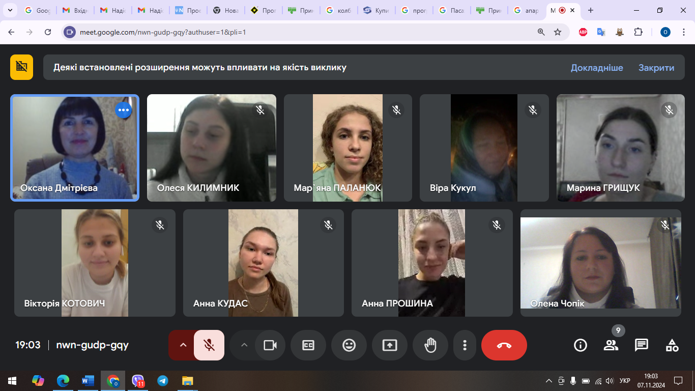 04 листопада 2024 року відбулася зустріч гаранта ОПП Корекційна психопедагогіка та інклюзивне навчання канд. психол. наук, доцента Мар’яни БУЙНЯК, члена робочої групи доктора психологічних наук, професора, завідувача, професора кафедри спеціальної та інклюзивної освіти Світлани МИХАЛЬСЬКОЇ зі здобувачами вищої освіти першого (бакалаврського) рівня з метою обговорення ОПП Корекційна психопедагогіка та інклюзивне навчання першого (бакалаврського) рівня вищої освіти.