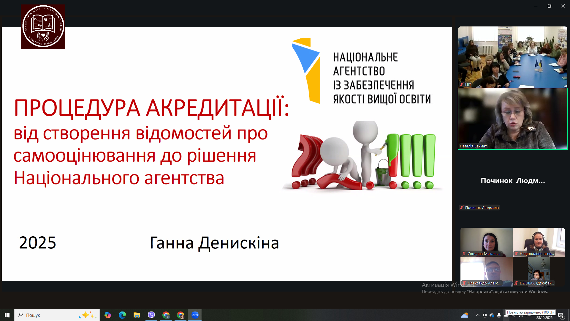 28 жовтня 2025 року гаранти освітніх програм Спеціальна освіта третього (освітньо-наукового) рівня вищої освіти Миронова Світлана, Спеціальна освіта (Олігофренопедагогіка) другого (магістерського) рівня вищої освіти Михальська Світлана, Корекційна психопедагогіка та інклюзивне навчання першого (бакалаврського) рівня вищої освіти Буйняк Мар’яна  взяли участь у семінарі «Процедура акредитації: від створення відомостей про самооцінювання до рішення Національного агентства». Спікер – Ганна Денискіна.