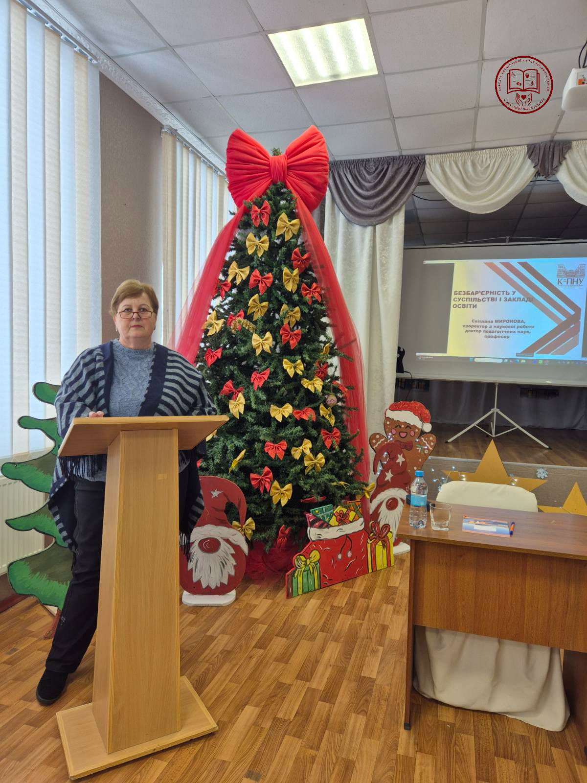 8 січня було проведено науково-практичний семінар для педагогічного колективу Солобковецького навчально-реабілітаційного центру. Тема семінару: “Безбар’єрність в суспільстві та закладі освіти”. Керівник семінару – проректор з наукової роботи, доктор педагогічних наук, професор Світлана МИРОНОВА. Під час семінару розглянули сутність Національної стратегії із створення безбар’єрного простору в Україні на період до 2030 року; напрями усунення бар’єрів; довідник безбар’єрності; особливості безбар’єрного спілкування. Дякуємо колективу за активну участь, цікаві запитання та обговорення.