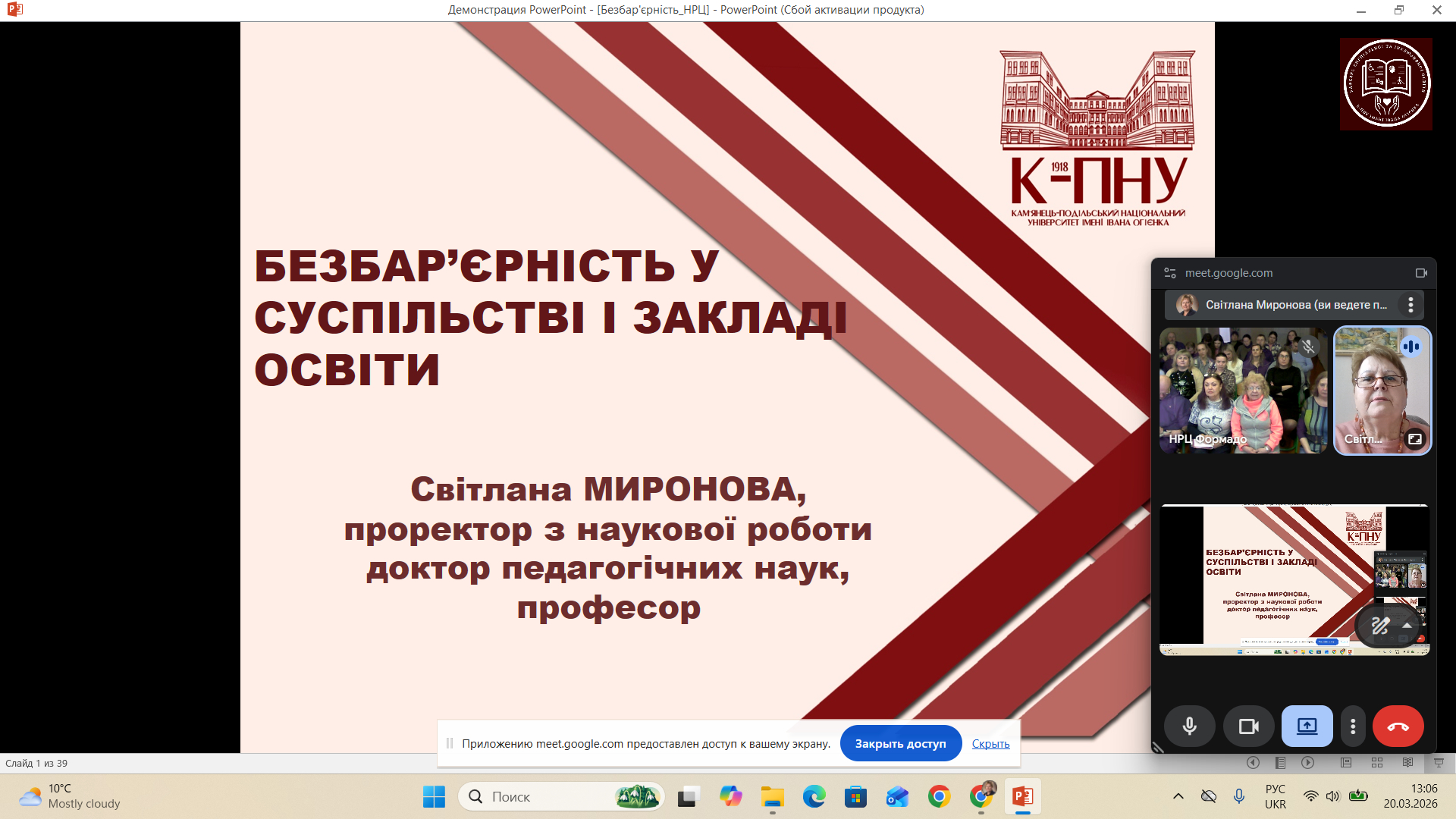 Розпочалася реалізація сертифікатної програми «Безбар’єрність в закладах освіти». Основний контингент слухачів складають педагогічні працівники Комунального закладу «Одеський навчально-реабілітаційний центр «Формадо» Одеської обласної ради».