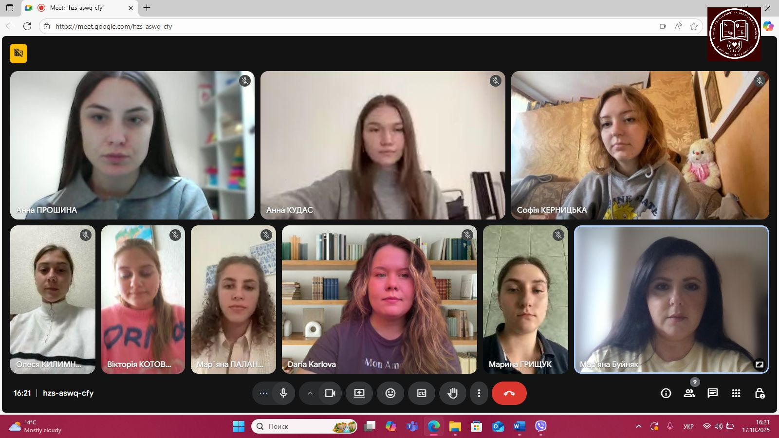 В рамках проведення моніторингу ОПП 13 жовтня 2025 року гарант освітньо-професійної програми Корекційна психопедагогіка та інклюзивне навчання першого (бакалаврського) рівня вищої освіти канд. психол. наук, доцент Буйняк М.Г. та член робочої групи, завідувач кафедри, док. психол. наук, професор Михальська С.А. провели зустріч зі здобувачами, де обговорили програмні результати навчання, цілі сталого розвитку.