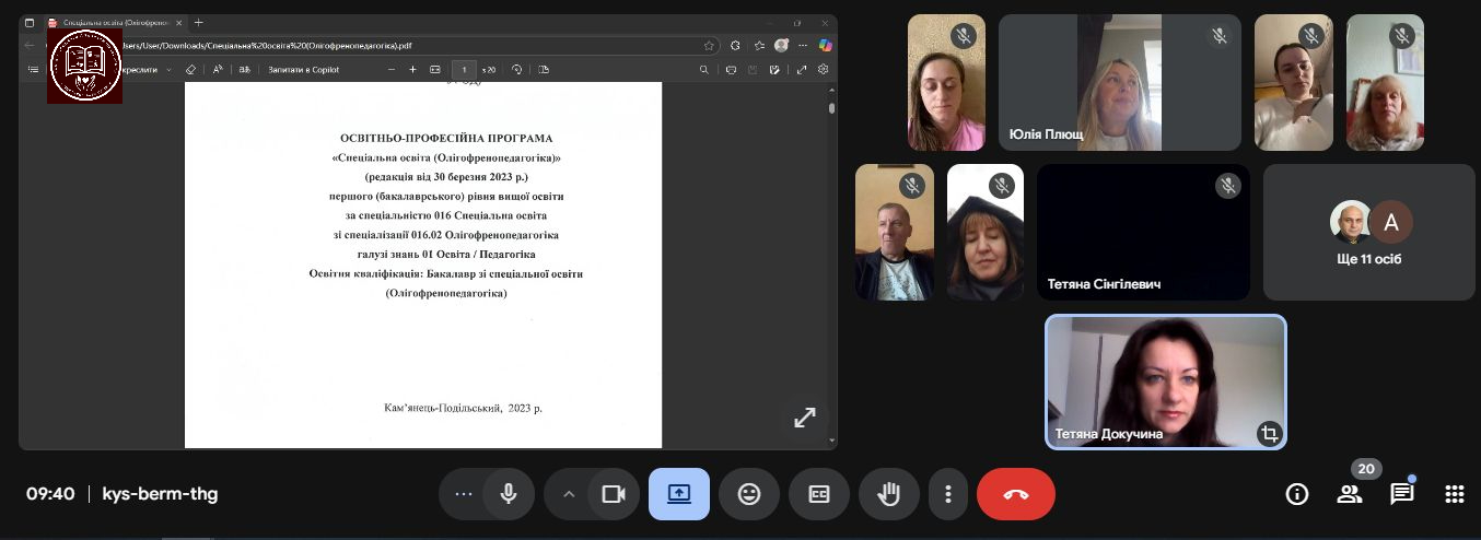 20 жовтня 2025 року в межах щорічного моніторингу освітньо-професійних програм в Кам’янець-Подільському національному університеті імені Івана Огієнка відбулося обговорення ОПП “Спеціальна освіта (Олігофренопедагогіка)” першого (бакалаврського) рівня вищої освіти з фахівцями-практиками спеціальної та інклюзивної освіти.