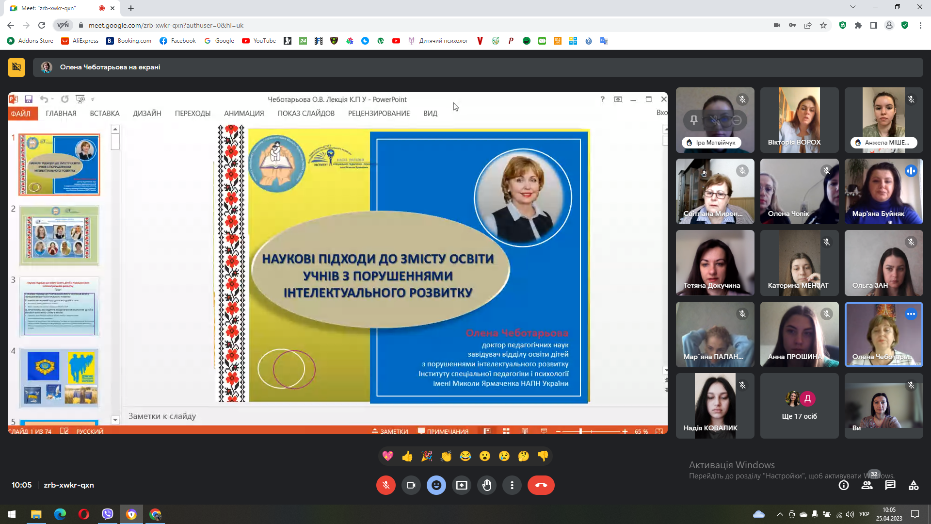 Щиро дякуємо Олені Валентинівні за те, що поділилися своїми цінними напрацюваннями, за готовність до співпраці! Очікуємо на нові зустрічі із фахівцями Інституту спеціальної педагогіки і психології імені Миколи Ярмаченка НАПН України, який сьогодні представляла О.В.Чеботарьова!