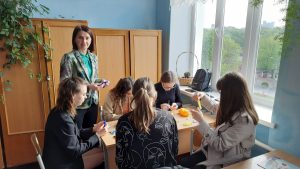 Здобувачі вищої освіти мали нагоду поспілкуватися з асистентами вчителів Остроушко І.В. та Констянтиновою О.А., які досить детально та доступно розповіли про свої функції в інклюзивному закладі, особливості співпраці з педагогами та батьками учнів з особливими освітніми потребами, показали наочні посібники, які використовують у роботі з дітьми.