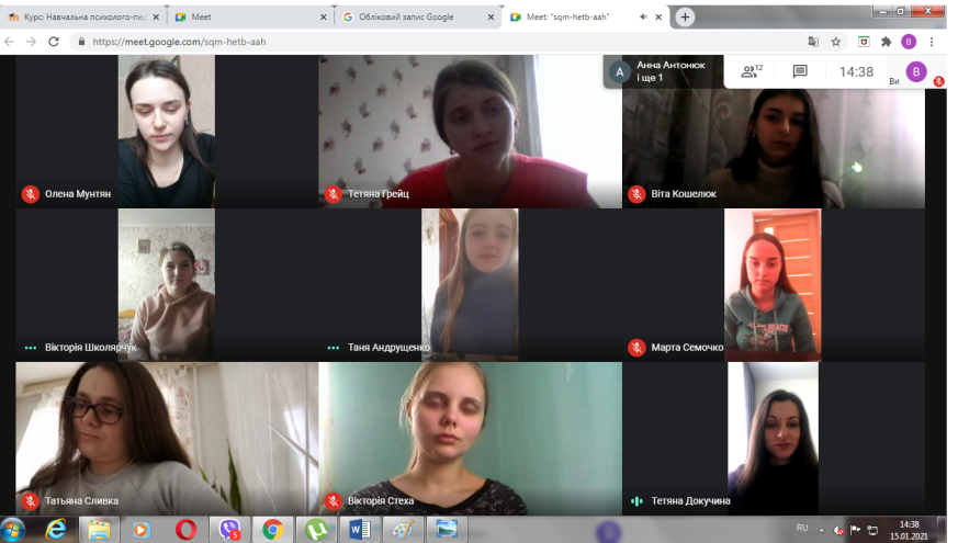 15.01.2021 кандидатом педагогічних наук, доцентом кафедри корекційної педагогіки та інклюзивної освіти Докучиною Т.О. була проведена настановча конференція з навчальної психолого-педагогічної практики для групи Kor1-B18