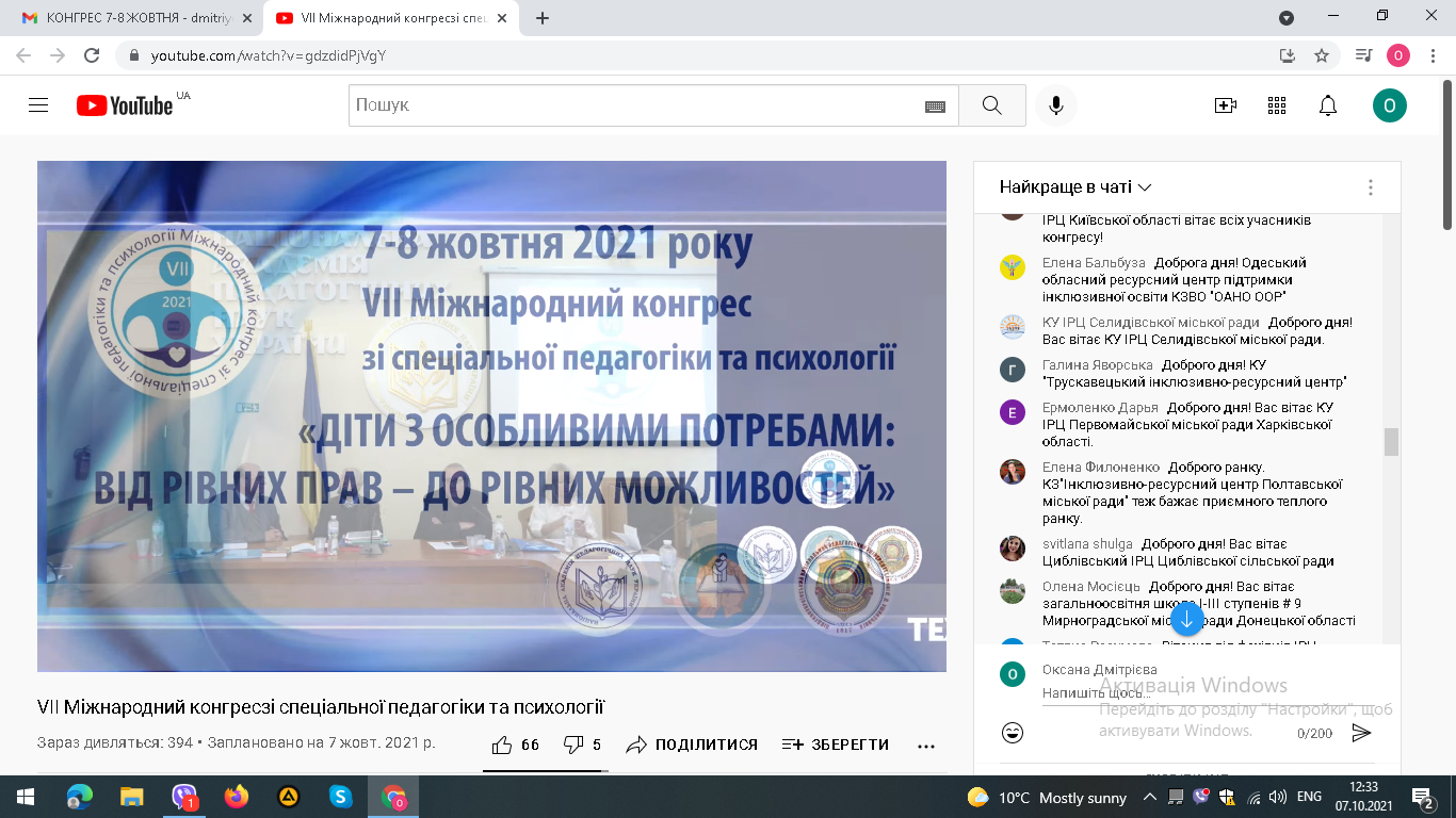 Викладачі кафедри брали участь у VII Міжнародному Конгресі зі спеціальної педагогіки і психології «Діти з особливими потребами: від рівних прав ‒ до рівних можливостей», організованого Інститутом спеціальної педагогіки і психології імені М иколи Ярмаченка НАПН України спільно з Південноукраїнським національним педагогічним університетом імені К.Д.Ушинського, який відбувся онлайн 7-8 жовтня 2021 р.